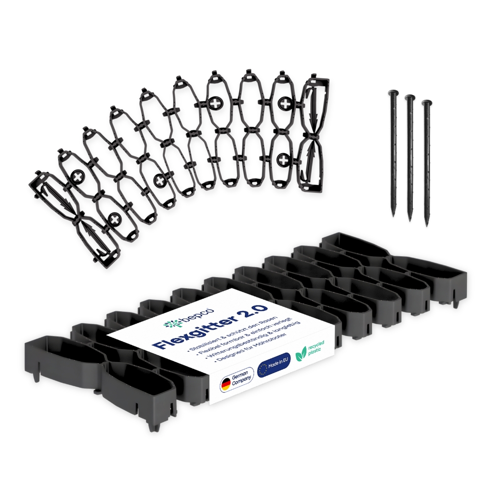 Durch häufiges Befahren mit dem Auto entstehen im Rasenboden unschöne Rillen, die später nur mit hohem Aufwand entfernt werden können. Die Rasengitter aus Kunststoff schaffen einen festen Boden auf der Rasenfläche, wodurch der Untergrund weniger stark beansprucht und nicht zerstört wird. Unsere Rasenwaben können auch mit Fahrzeugen (bis 250 Tonnen pro Quadratmeter) befahren werden, die den Rasen gegen Fahrrillen schützen und die Gefahr des Feststeckens mindern.